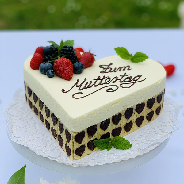Leichte Biskuimasse saftig mit Früchten und luftiger Joghurtsahne umhüllt. 20 cm.